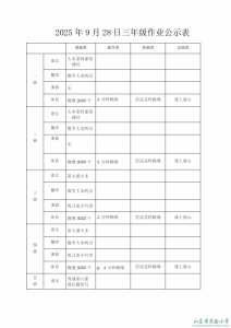2025年9月26日作業(yè)公示